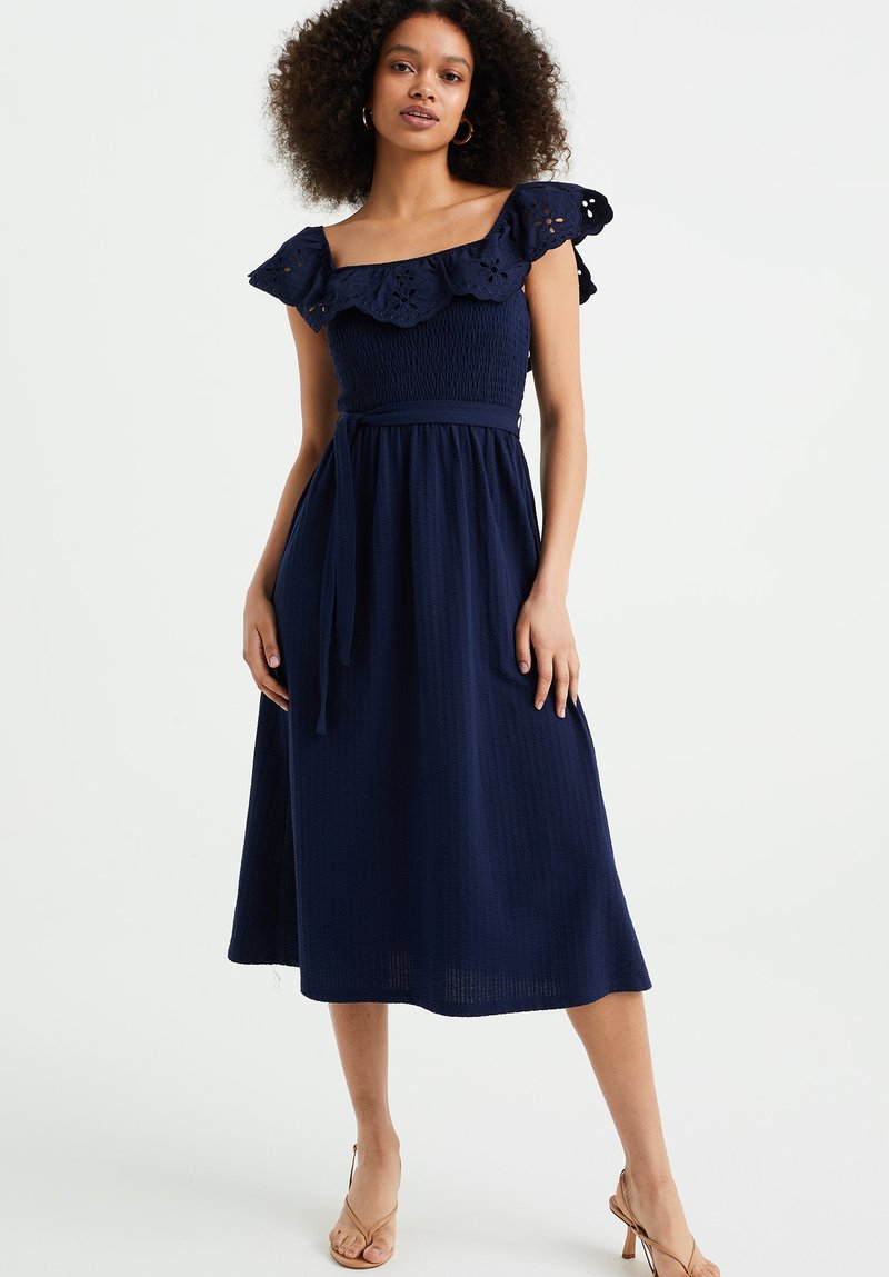 Stay chic and comfortable in this WE Fashion Women's Casual/Elegant Blue Dress. Perfect for the Spring/Summer season, this versatile piece can easily be dressed up or down. Made from soft jersey fabric, it features a flattering silhouette and a timeless color that will never go out of style. Add this dress to your wardrobe for a effortlessly stylish look.