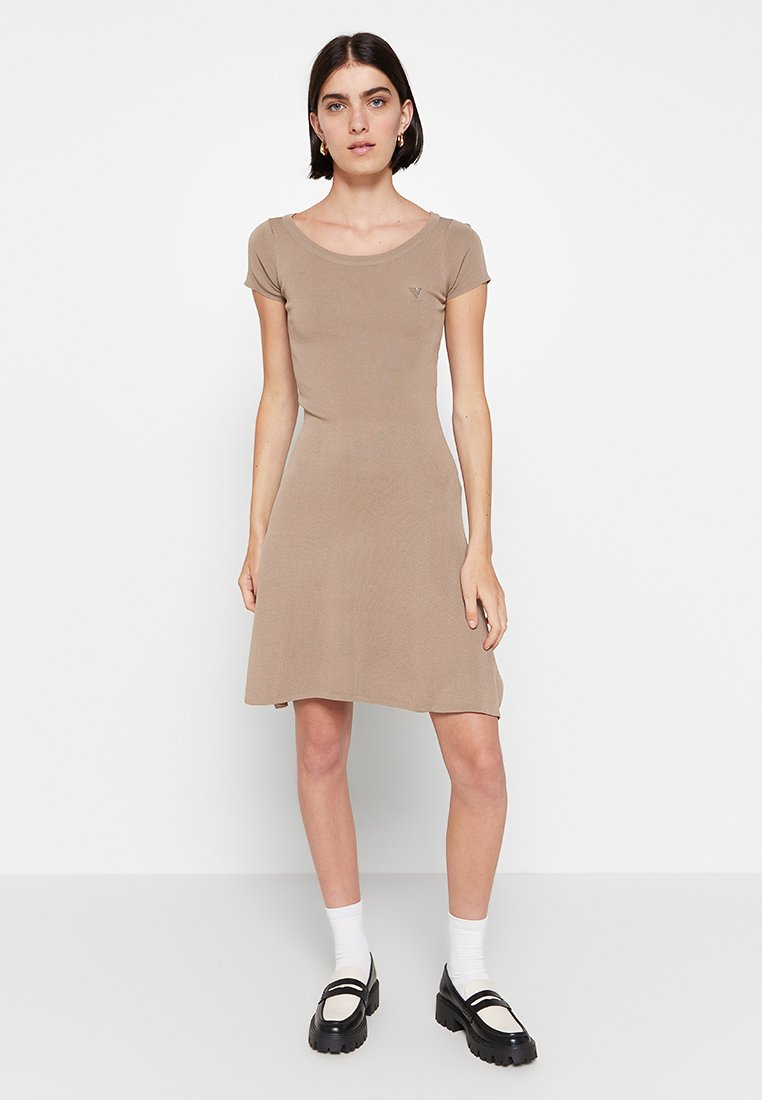 This casual Guess shirt for women is perfect for the Spring/Summer season. The beige color gives it a versatile and chic look. Made from comfortable knit fabric, this shirt is ideal for everyday wear. Stay stylish and comfortable in this versatile piece.