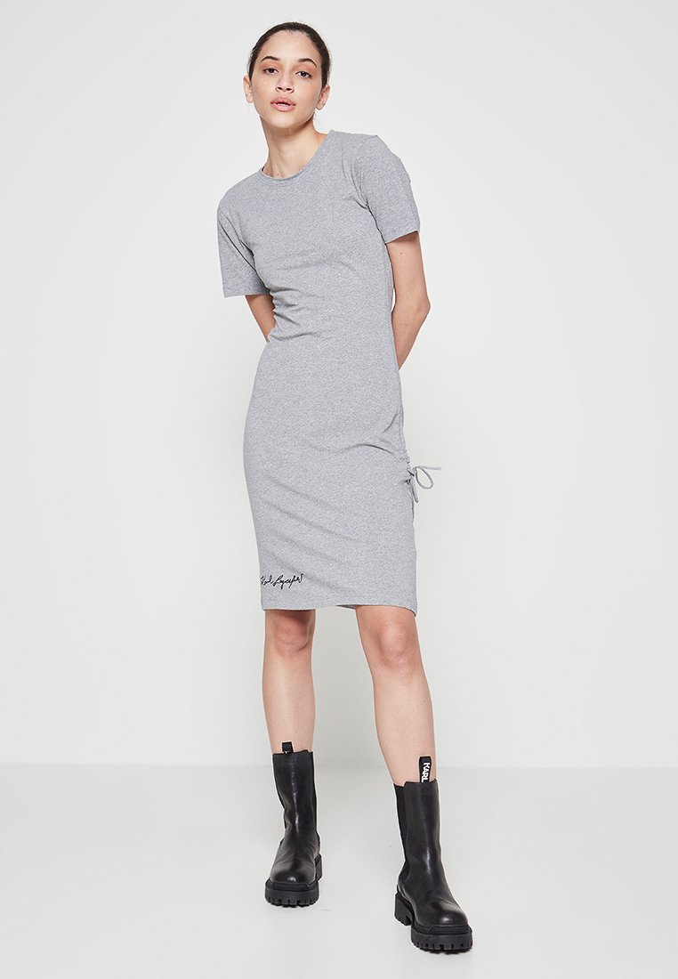 Elevate your spring/summer wardrobe with this Casual/Elegant Grey dress from Karl Lagerfeld. Perfect for any occasion, this versatile piece effortlessly combines style and comfort. The soft fabric and flattering silhouette make it a must-have for the season. Whether you dress it up with heels or keep it casual with sandals, this dress is sure to become a staple in your closet.