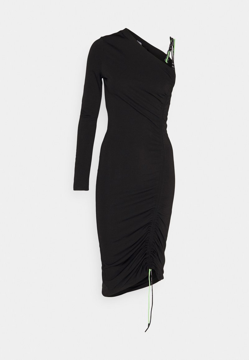 Introducing the Karl Lagerfeld Women's Casual/Elegant Dress in Black - the perfect piece for the Spring/Summer season. This versatile dress is effortlessly chic, combining a relaxed style with sophisticated elegance. Made from comfortable fabric, it features a timeless black color that can be dressed up or down for any occasion. Elevate your wardrobe with this must-have piece from Karl Lagerfeld.