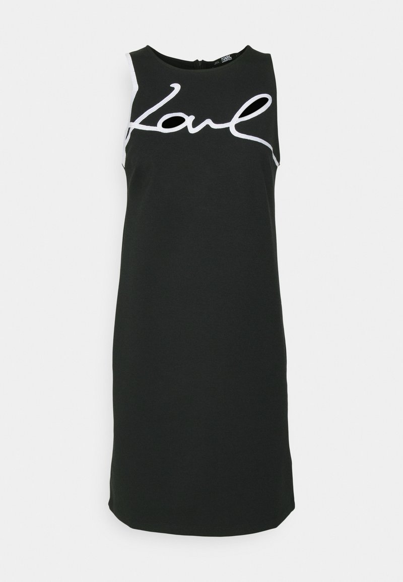 Introducing the Karl Lagerfeld Women's Casual/Elegant Dress in Black - the perfect piece for the Spring/Summer season. This versatile dress is effortlessly chic, combining a relaxed style with sophisticated elegance. Made from comfortable fabric, it features a timeless black color that can be dressed up or down for any occasion. Elevate your wardrobe with this must-have piece from Karl Lagerfeld.