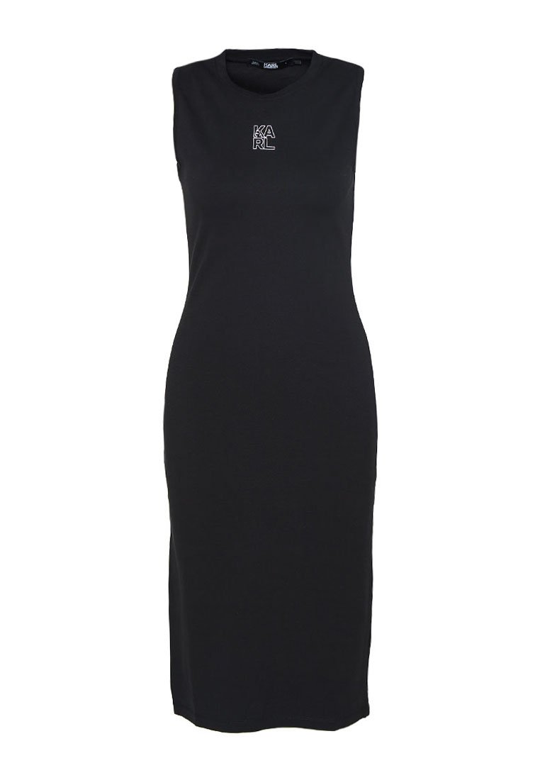 Introducing the Karl Lagerfeld Women's Casual/Elegant Dress in Black - the perfect piece for the Spring/Summer season. This versatile dress is effortlessly chic, combining a relaxed style with sophisticated elegance. Made from comfortable fabric, it features a timeless black color that can be dressed up or down for any occasion. Elevate your wardrobe with this must-have piece from Karl Lagerfeld.
