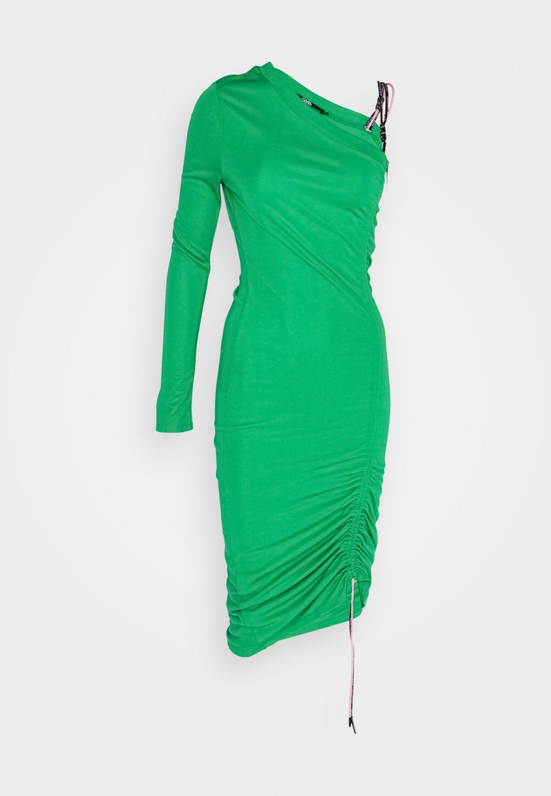 Stay cool and chic this Spring/Summer with the Karl Lagerfeld Casual/Elegant Green Dress. Perfect for any occasion, this versatile piece effortlessly combines style and comfort. The soft knit fabric drapes beautifully on the body, while the vibrant green hue adds a pop of color to your wardrobe. Elevate your look with the timeless design of this must-have dress.