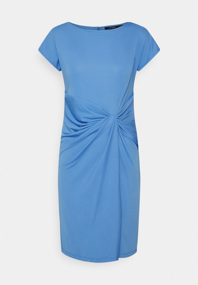 Stay cool and sophisticated in this Lauren Ralph Lauren Blue Knit Dress. Perfect for the Spring/Summer season, this casual yet elegant dress is the ideal choice for any occasion. The soft knit fabric and flattering silhouette make it a versatile and stylish addition to your wardrobe. Embrace effortless style with this timeless piece from Lauren Ralph Lauren.