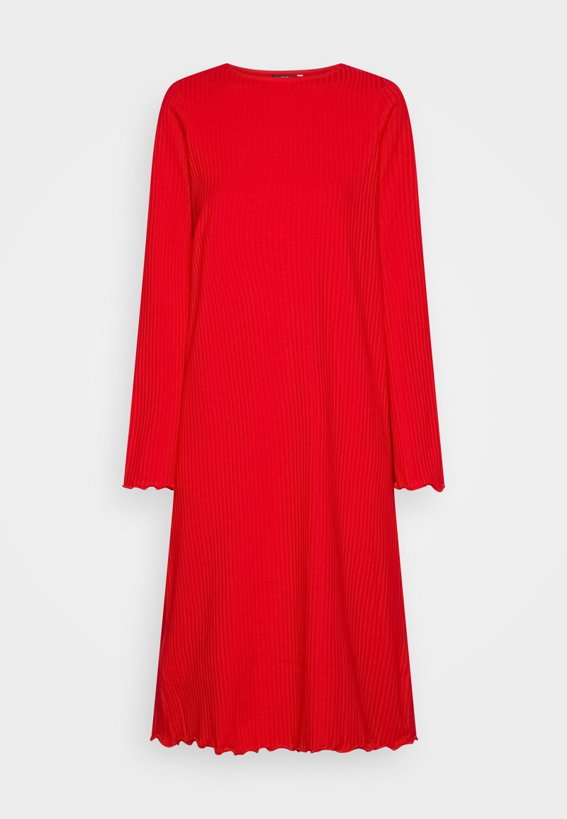 Get ready for the warmer months with this Casual/Elegant Red dress from Monki. Perfect for Spring/Summer, this versatile piece can easily be dressed up or down. The lightweight fabric and flowy silhouette make it ideal for any occasion. Stay stylish and comfortable all season long in this must-have wardrobe staple.