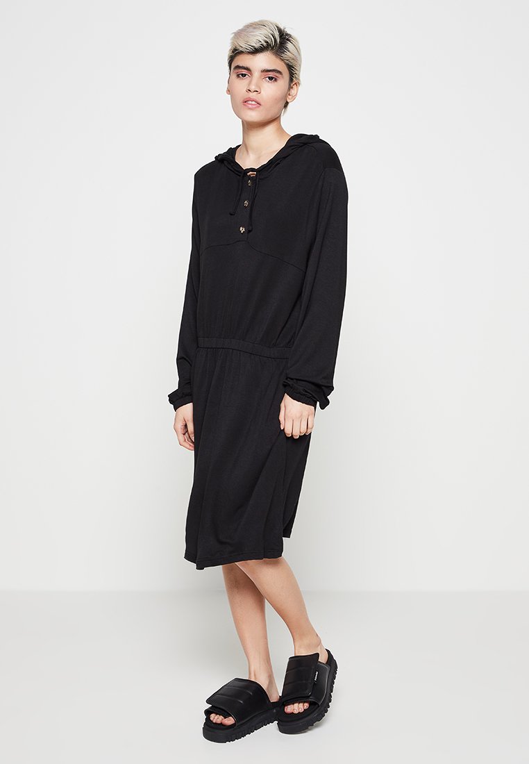 Elevate your Spring/Summer wardrobe with this versatile black knit dress from the brand Only. Perfect for any occasion, this casual yet elegant piece is a must-have for women who appreciate timeless style. The simple silhouette and flattering fit make it a go-to choice for warm weather days. Stay chic and comfortable all season long in this sophisticated dress.