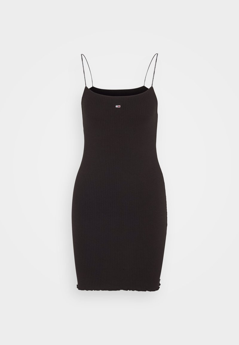 Stay chic and comfortable in this casual yet elegant Tommy Jeans dress in black. Perfect for the warmer months of spring and summer, this versatile piece can be dressed up or down for any occasion. Made from high-quality materials, this dress is a must-have staple for any woman's wardrobe. Add a touch of sophistication to your look with this timeless piece from Tommy Jeans.