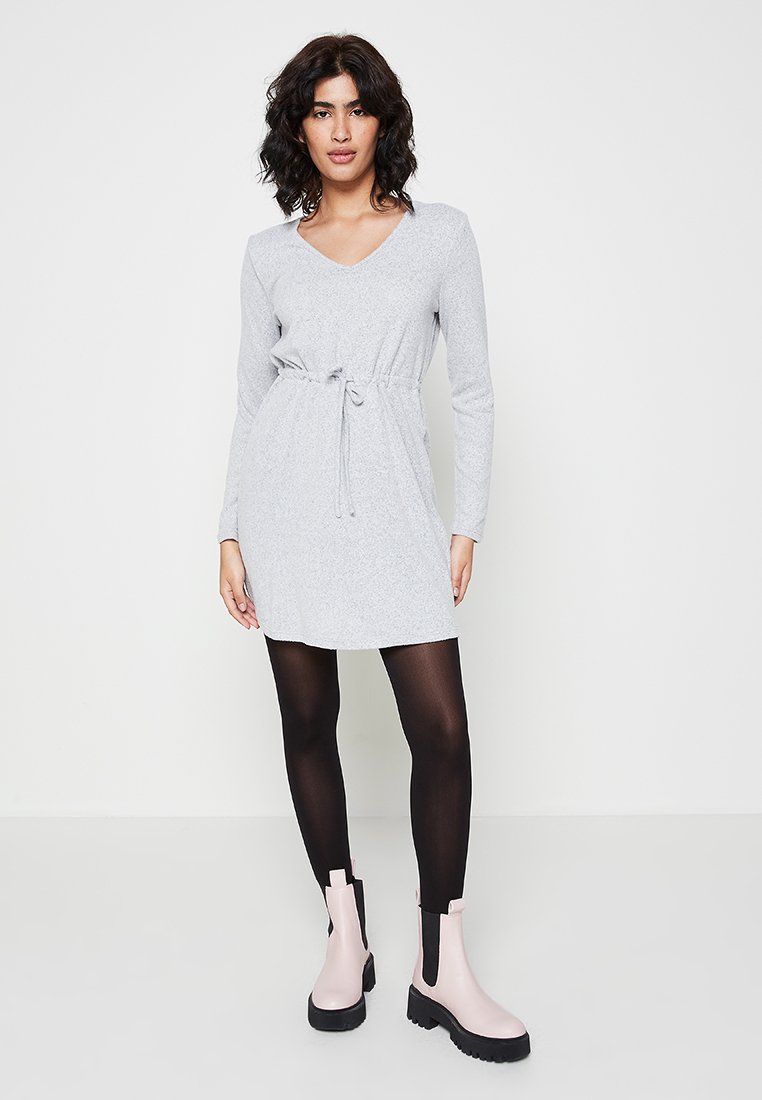 Stay effortlessly chic in this JDY Grey Knit Dress, perfect for the Spring/Summer season. This Casual/Elegant piece features a flattering silhouette and comfortable fabric. Ideal for any occasion, dress it up or down with accessories for a versatile look. Elevate your style with this wardrobe essential.