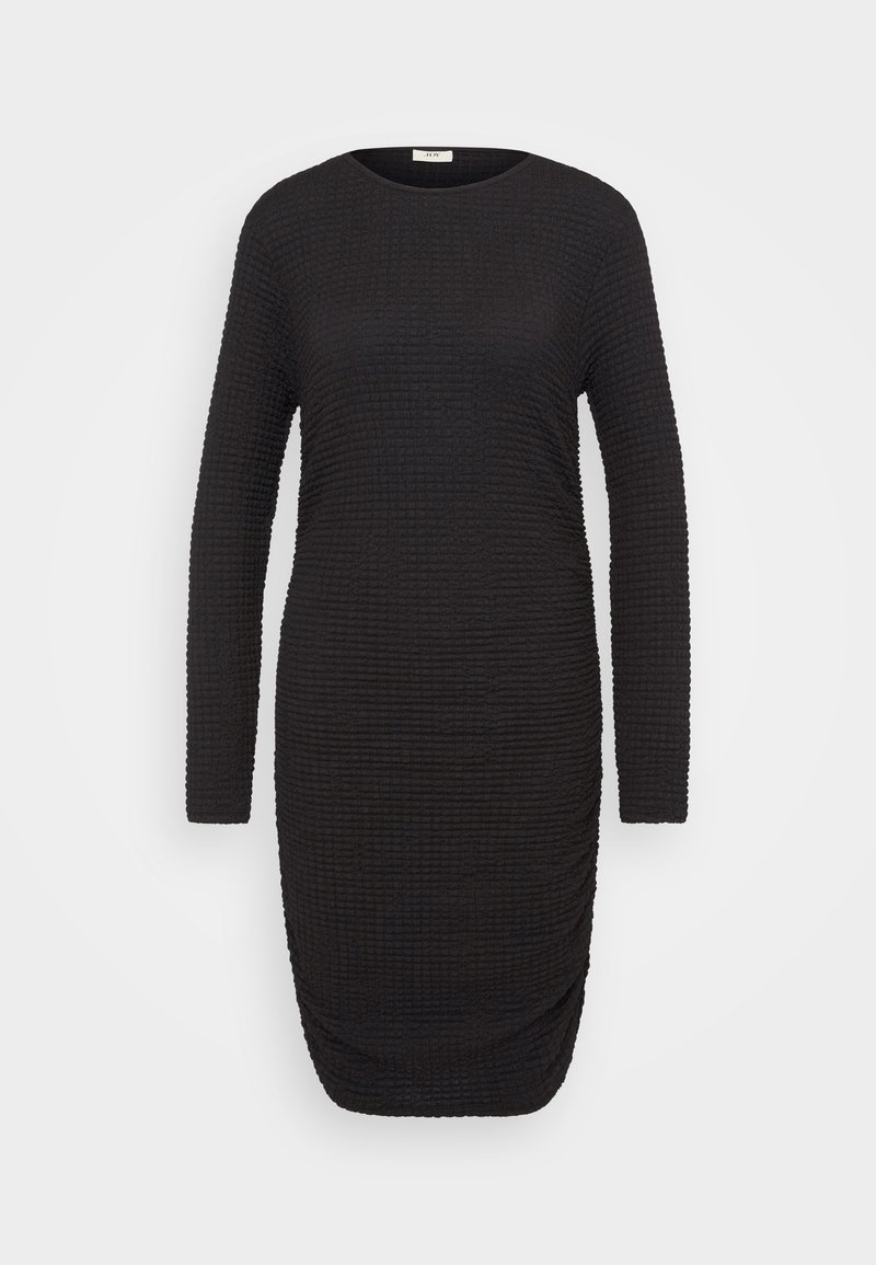 Stay effortlessly chic in this JDY Black Knit Dress, perfect for the spring/summer season. Combining casual and elegant style, this versatile piece is a must-have for any wardrobe. The soft knit fabric and flattering silhouette make it a comfortable and stylish option for any occasion. Elevate your look with this classic black dress from JDY.