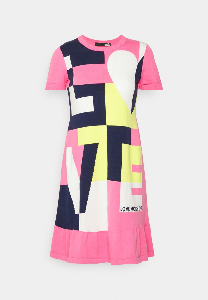 This Love Moschino dress is perfect for the spring/summer season. Its casual yet elegant style makes it versatile for any occasion. The multi-color design adds a fun and playful touch to any outfit. Stay stylish and comfortable in this must-have dress.