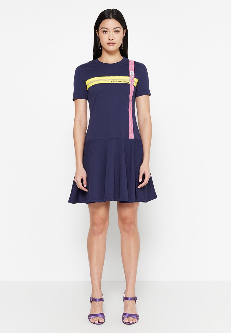 Elevate your spring/summer wardrobe with this stylish Love Moschino Casual/Elegant dress for women. The vibrant blue color adds a refreshing touch to your look. Made from comfortable knit fabric, this dress effortlessly transitions from day to night. Perfect for any occasion, this dress combines comfort and sophistication in one versatile piece.