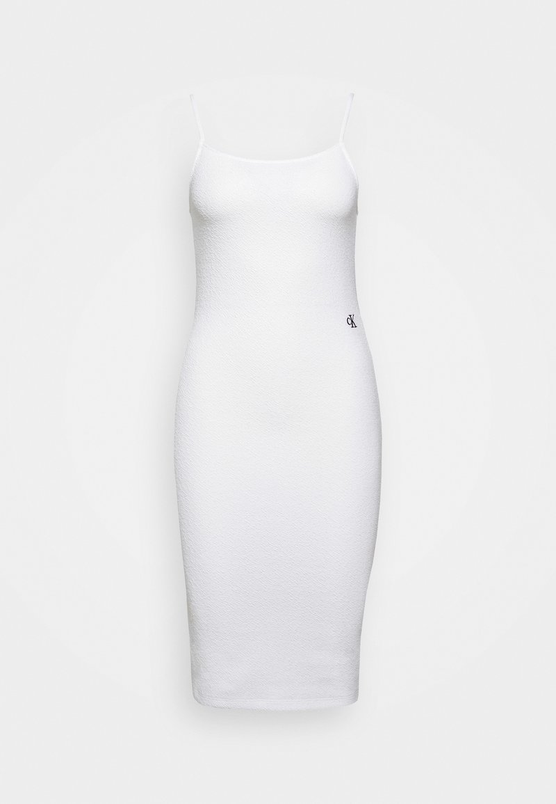Stay cool and chic in this Calvin Klein Jeans Casual/Elegant dress, perfect for the Spring/Summer season. Made in a crisp white color, this versatile piece is ideal for any occasion. Pair it with sandals for a laid-back look or dress it up with heels for a night out. Upgrade your wardrobe with this must-have dress.