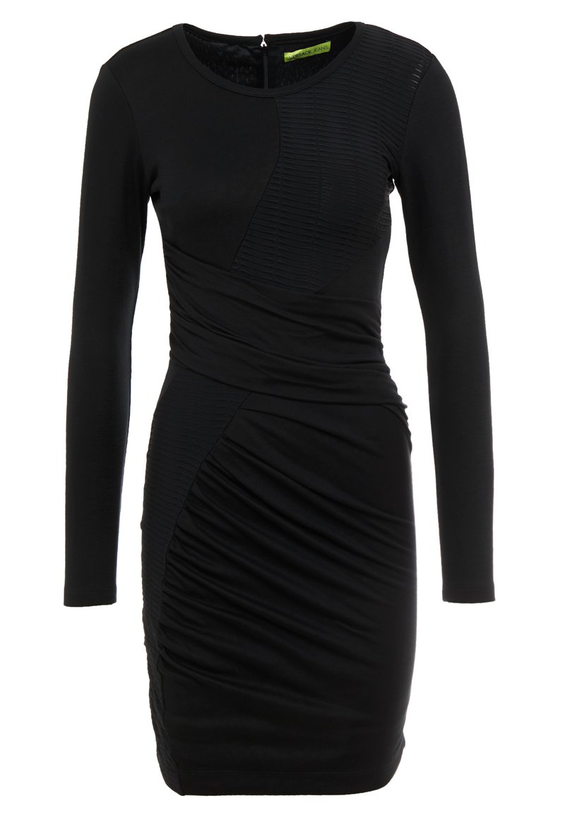 Stay effortlessly chic in this Versace Jeans black knit dress, perfect for the Spring/Summer season. With a casual yet elegant style, this versatile piece is ideal for any occasion. The soft fabric is comfortable and flattering, making it a must-have addition to your wardrobe. Dress it up or down for a stylish look that will turn heads wherever you go.