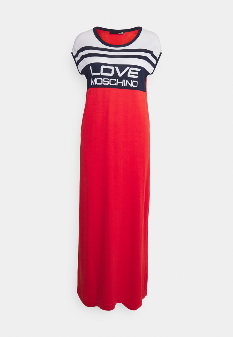 Get ready for the warmer months in style with this Casual/Elegant dress from Love Moschino. The vibrant red color is perfect for the Spring/Summer season. Made from a comfortable knit fabric, this dress combines both comfort and sophistication. Whether you're out for a brunch date or a day of shopping, this dress will keep you looking chic and feeling fabulous.