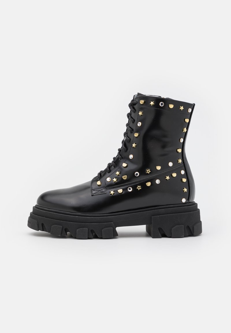 Stay stylish and comfortable this Autumn/Winter season with these Casual Women's Boots from CHIARA FERRAGNI. The black color adds a classic touch to any outfit, while the lace-up design provides a secure fit. Whether you're running errands or meeting friends for coffee, these boots are the perfect choice for everyday wear. Add a touch of Italian flair to your wardrobe with these versatile and fashionable stivaletti stringati.
