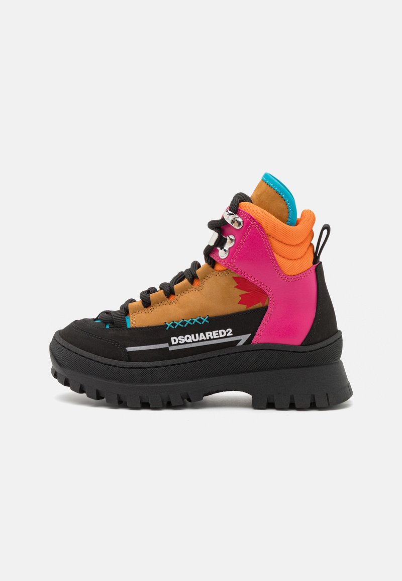 Stay stylish and cozy this Autumn/Winter season with these Casual Boots for Women from Dsquared2. The multi-colored design adds a pop of fun to any outfit, while the lace-up detail provides a trendy touch. Perfect for casual outings or weekend adventures, these boots are the perfect addition to your winter wardrobe. Bring some warmth and style to your look with the Dsquared2 lace-up ankle boots.