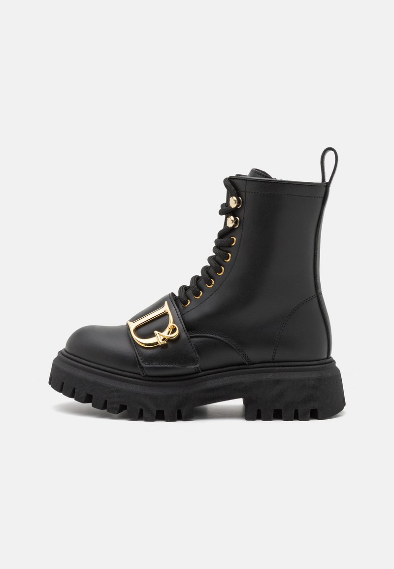 Stay stylish and cozy this Autumn/Winter season with these Casual Boots for Women from Dsquared2. Crafted in sleek black, these lace-up ankle boots are perfect for everyday wear. The stivaletti stringati feature a versatile design that pairs effortlessly with any outfit. Elevate your winter wardrobe with these fashionable and comfortable boots.