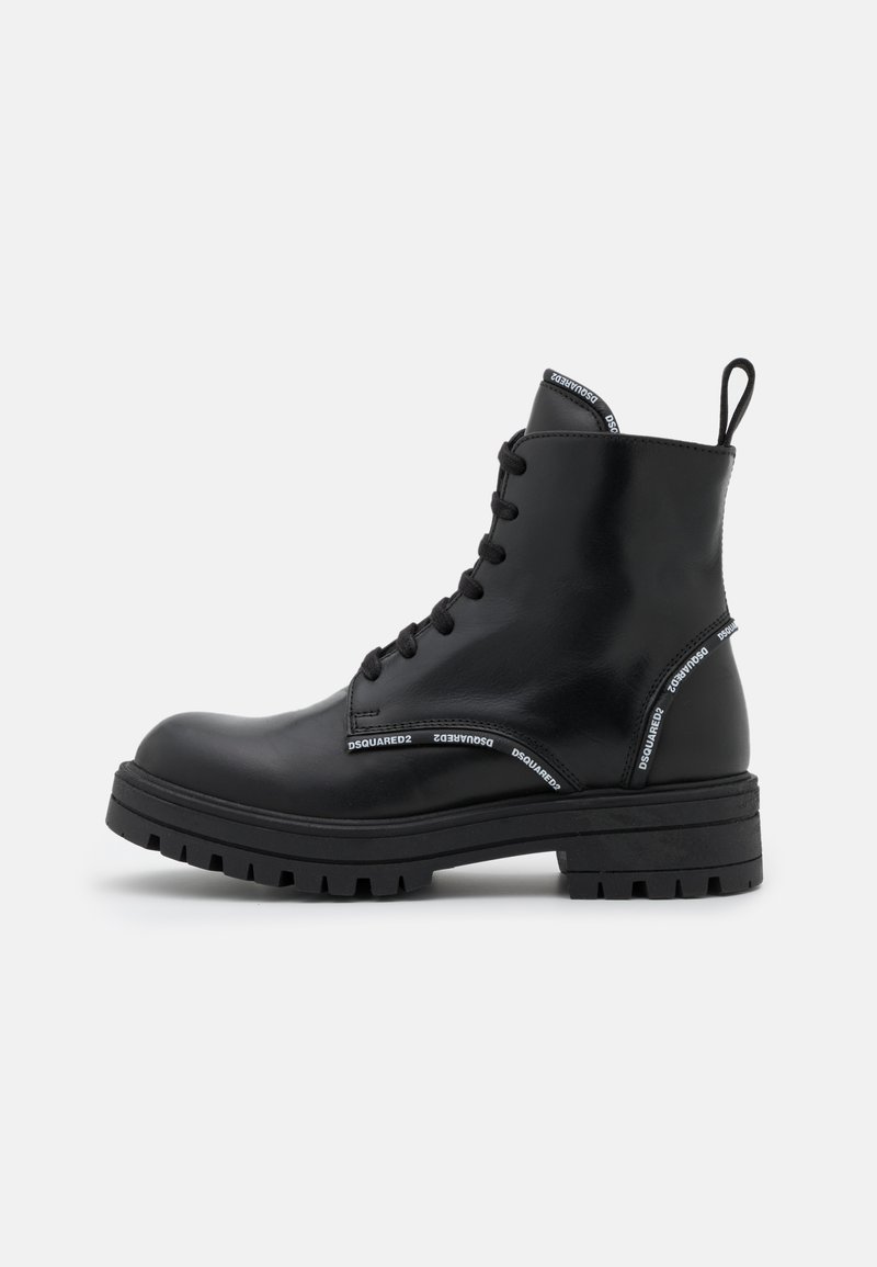 Stay stylish and cozy this Autumn/Winter season with these Casual Boots for Women from Dsquared2. Crafted in sleek black, these lace-up ankle boots are perfect for everyday wear. The stivaletti stringati feature a versatile design that pairs effortlessly with any outfit. Elevate your winter wardrobe with these fashionable and comfortable boots.