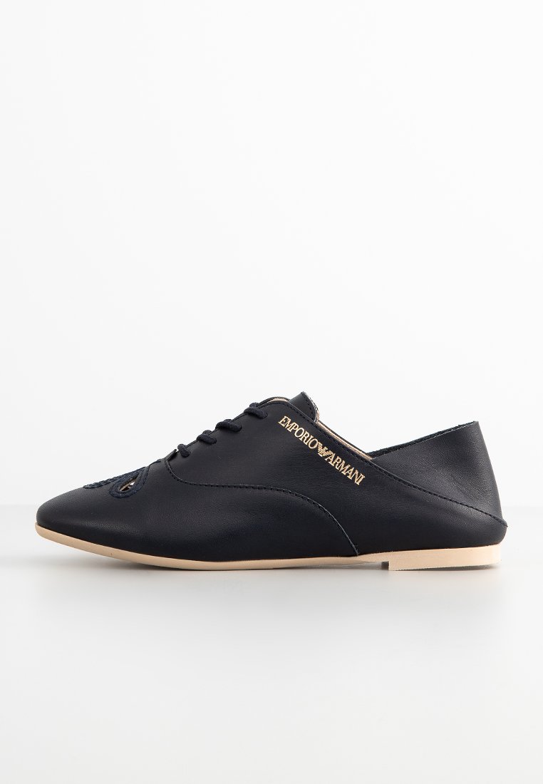 Elevate your casual look with these Emporio Armani lace-up shoes for women. Perfect for the warmer months, these elegant blue shoes are a versatile addition to your wardrobe. Whether you're heading to brunch or a summer wedding, these shoes will keep you stylish and comfortable all day long. Make a statement with the perfect blend of casual and elegance this season.