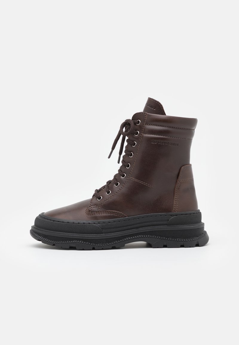 Stay stylish and comfortable this Autumn/Winter season with these casual brown boots from Emporio Armani. Perfect for everyday wear, the lace-up design adds a touch of sophistication to any outfit. Made from high-quality materials, these boots are both fashionable and durable. Elevate your winter wardrobe with these versatile Emporio Armani lace-up boots.