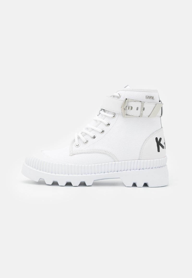 Stay stylish and comfortable this Autumn/Winter season with these Casual Boots for Women from Karl Lagerfeld. The crisp white color adds a fresh touch to any outfit. These lace-up boots are perfect for a casual day out or a weekend adventure. Elevate your seasonal wardrobe with these effortlessly chic stivaletti stringati.