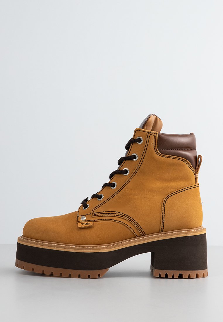 Elevate your casual style this Autumn/Winter with Maje's Beige Lace-up Boots for Women. Perfect for adding a touch of sophistication to your everyday outfits. These boots are ideal for chilly weather and will keep your feet warm and stylish. Update your wardrobe with these versatile and chic boots.