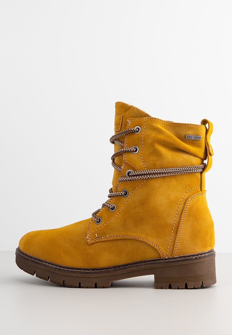 Stay on trend this Autumn/Winter season with these casual boots for women from Tamaris. In a vibrant yellow color, these lace-up ankle boots are both stylish and practical. With a comfortable fit and durable design, these boots are perfect for adding a pop of color to any outfit. Step out in style with the Tamaris lace-up ankle boots.