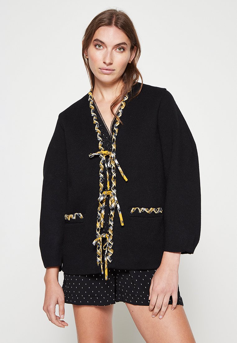 Stay cozy yet stylish in this casual Maje women's jacket, perfect for the Autumn/Winter season. The vibrant yellow color adds a pop of brightness to any outfit. This lightweight jacket is versatile and practical for everyday wear. Embrace the chilly weather in this trendy piece called "giacca leggera".