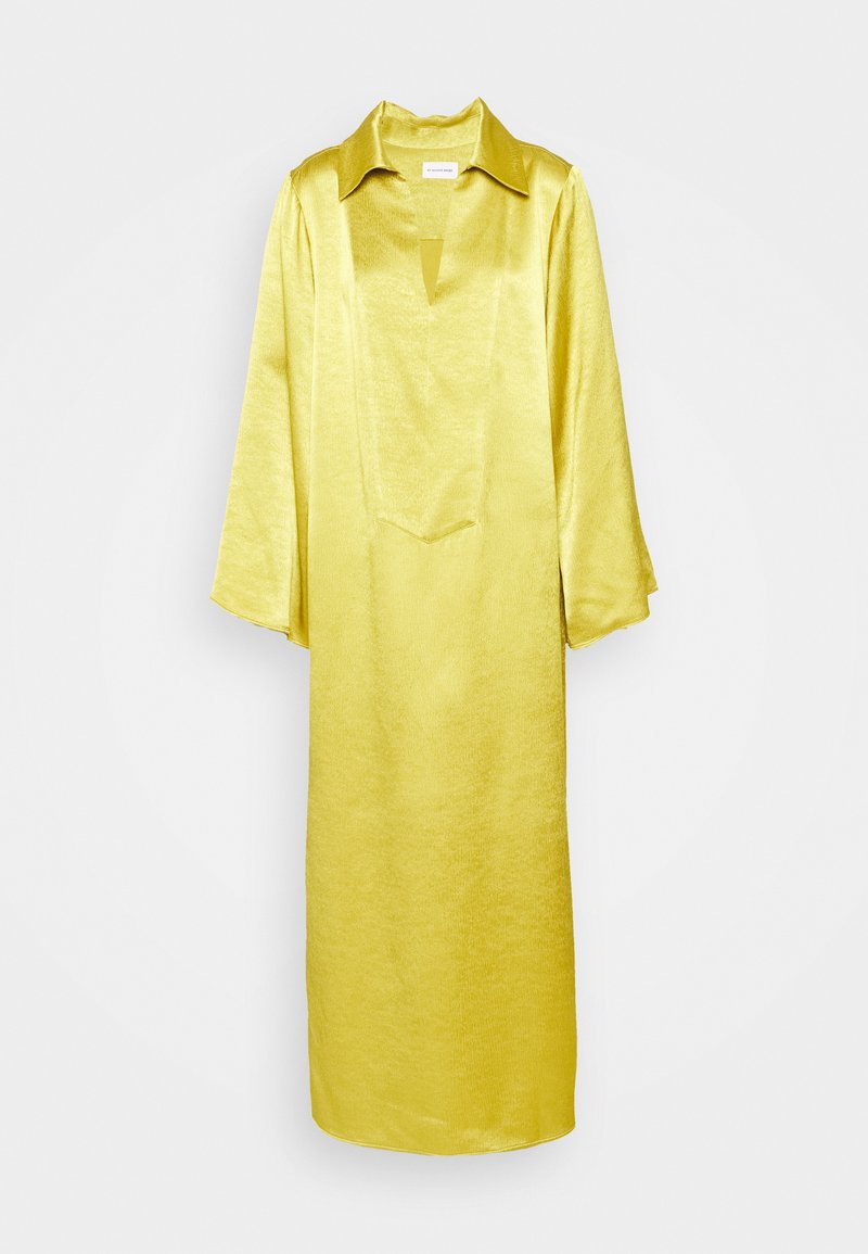 Stay effortlessly chic this Spring/Summer in this stunning green long dress by By Malene Birger. Perfect for both casual and elegant occasions, this versatile piece is a must-have for your wardrobe. The flowing silhouette and subtle details add a touch of sophistication to your look, making it a standout choice for any event. Elevate your style with this timeless dress that exudes class and grace.