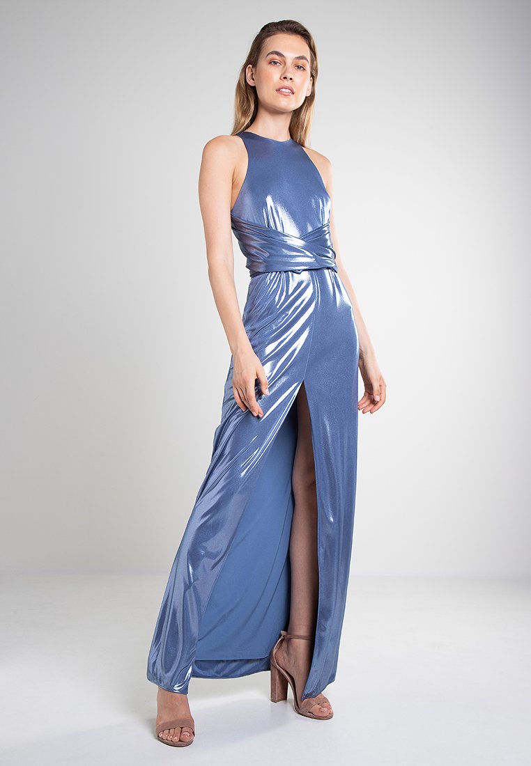 Elevate your Spring/Summer wardrobe with this stunning Halston Heritage long dress in a beautiful shade of blue. Effortlessly blending casual and elegant style, this versatile piece is perfect for any occasion. With a flattering silhouette and luxurious fabric, you'll feel chic and sophisticated all season long. Add this timeless piece to your collection for a stylish look that never goes out of fashion.