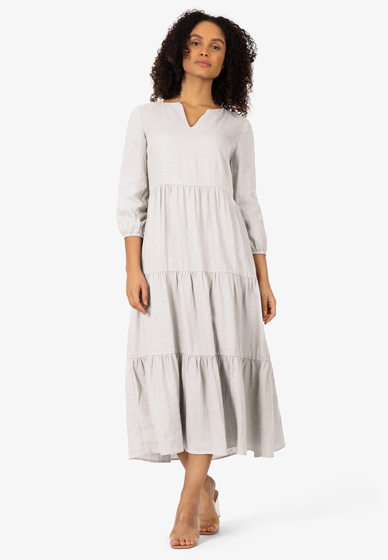 Stay chic and comfortable in this Casual/Elegant long dress from Apart. The perfect choice for the Spring/Summer season, this grey dress effortlessly combines style and versatility. Whether you're running errands or attending a summer soirée, this dress is sure to turn heads. Add a touch of sophistication to your wardrobe with this timeless piece.