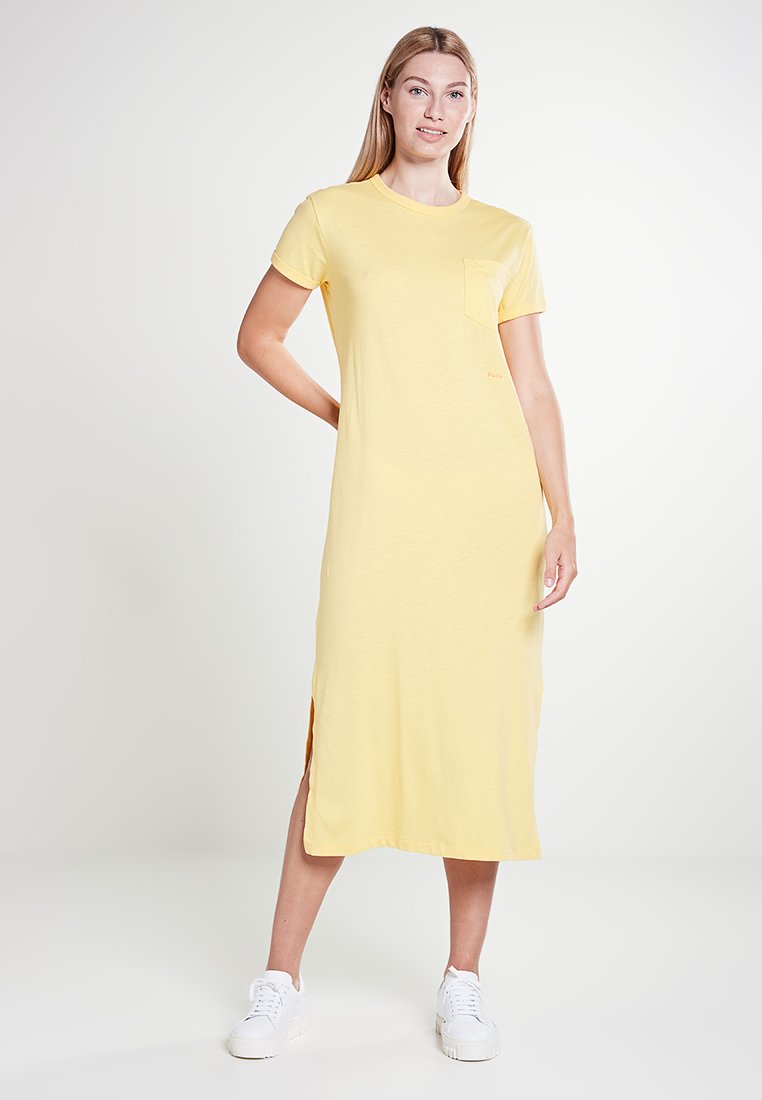 This Casual/Elegant Polo Ralph Lauren dress is perfect for the warmer seasons. The beautiful yellow color adds a pop of brightness to any outfit. With its flowy silhouette and delicate details, this dress is a must-have for any fashionable woman. Wear this dress for a chic and sophisticated look during Spring/Summer.