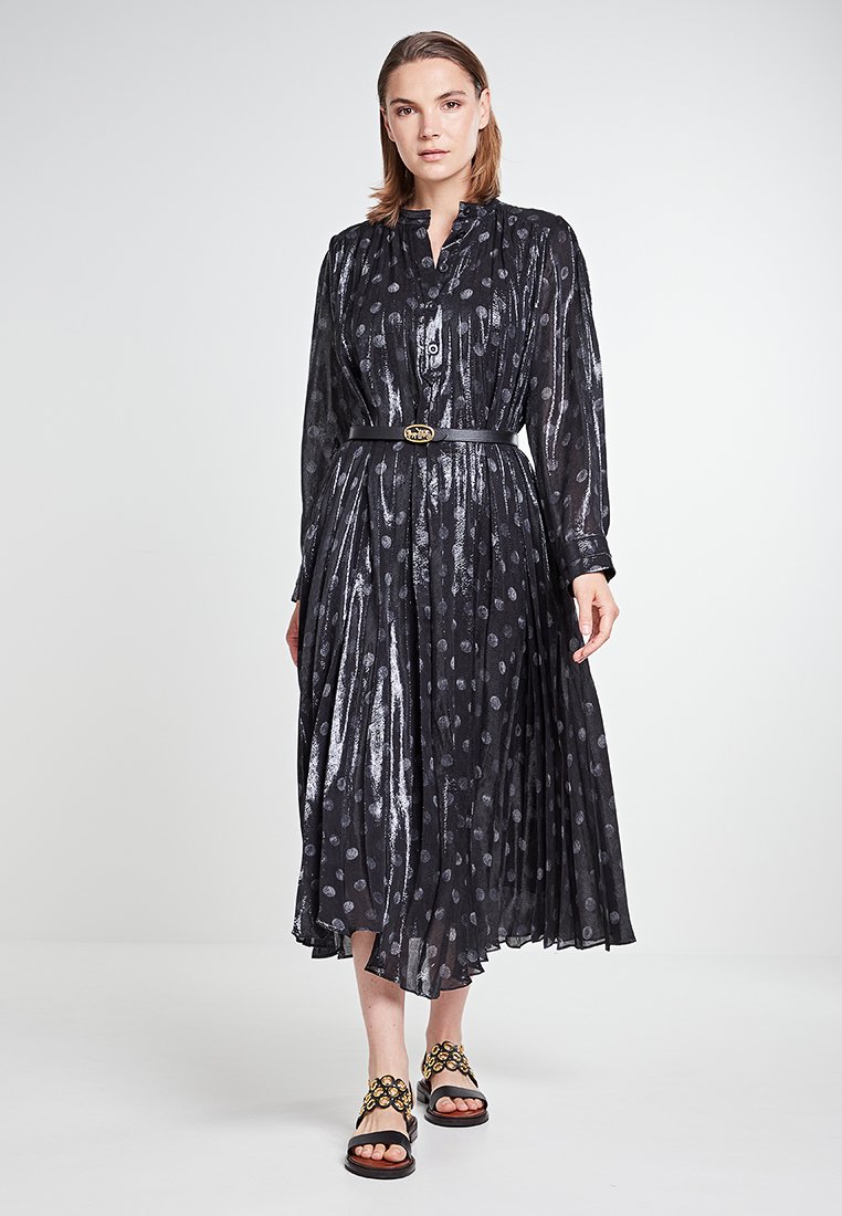 Effortlessly blend casual and elegant style with this black Coach dress for women. Perfect for the Spring/Summer season, this versatile piece is ideal for any occasion. The classic black color adds sophistication, while the long length brings a touch of glamour. Elevate your wardrobe with this must-have dress for a chic and timeless look.