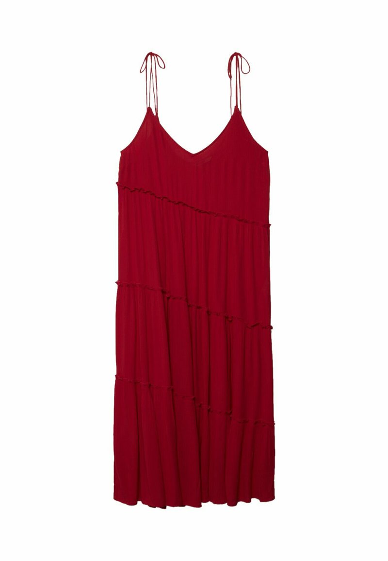 Get ready to turn heads in this Casual/Elegant red dress from Stradivarius. Perfect for the Spring/Summer season, this timeless piece effortlessly blends style and comfort. Whether you're out for a brunch date or attending a garden party, this dress is sure to make a statement. Elevate your wardrobe with this versatile and chic piece.