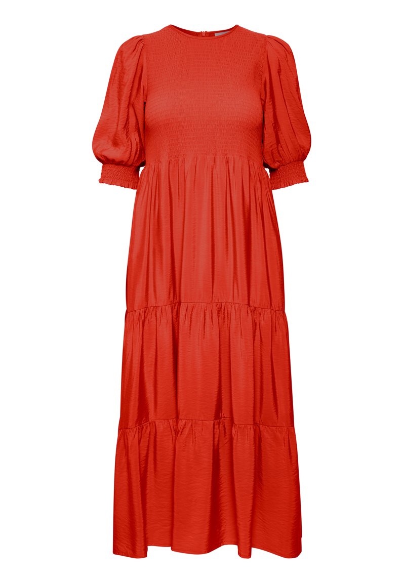 Stay effortlessly chic this Spring/Summer in the red Gestuz long dress. Perfect for both casual outings and elegant events, this versatile piece combines style and comfort in one. Its vibrant red color adds a pop of color to your wardrobe, while the flowing silhouette creates a flattering look for any body shape. Elevate your outfit with this must-have dress from Gestuz.
