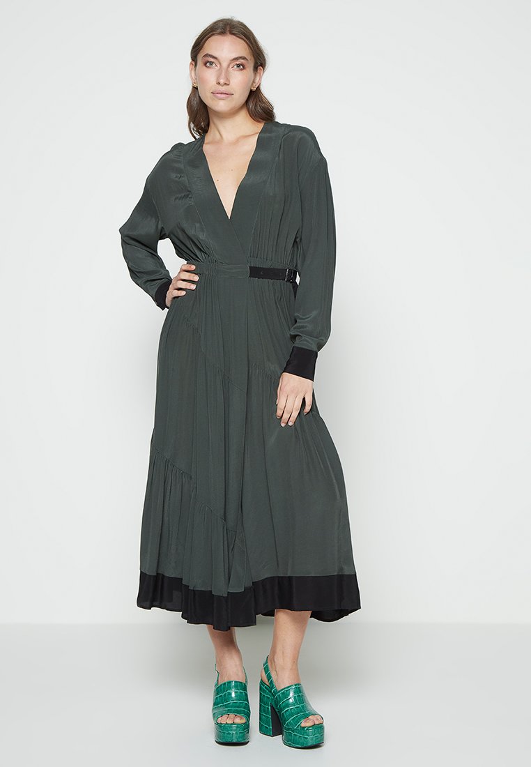 This chic CLAUDIE PIERLOT dress is perfect for the Spring/Summer season. In a beautiful shade of green, this Casual/Elegant style is ideal for any occasion. The long length adds a touch of sophistication, while the relaxed fit provides comfort. Add a pair of sandals or heels to complete your polished look.