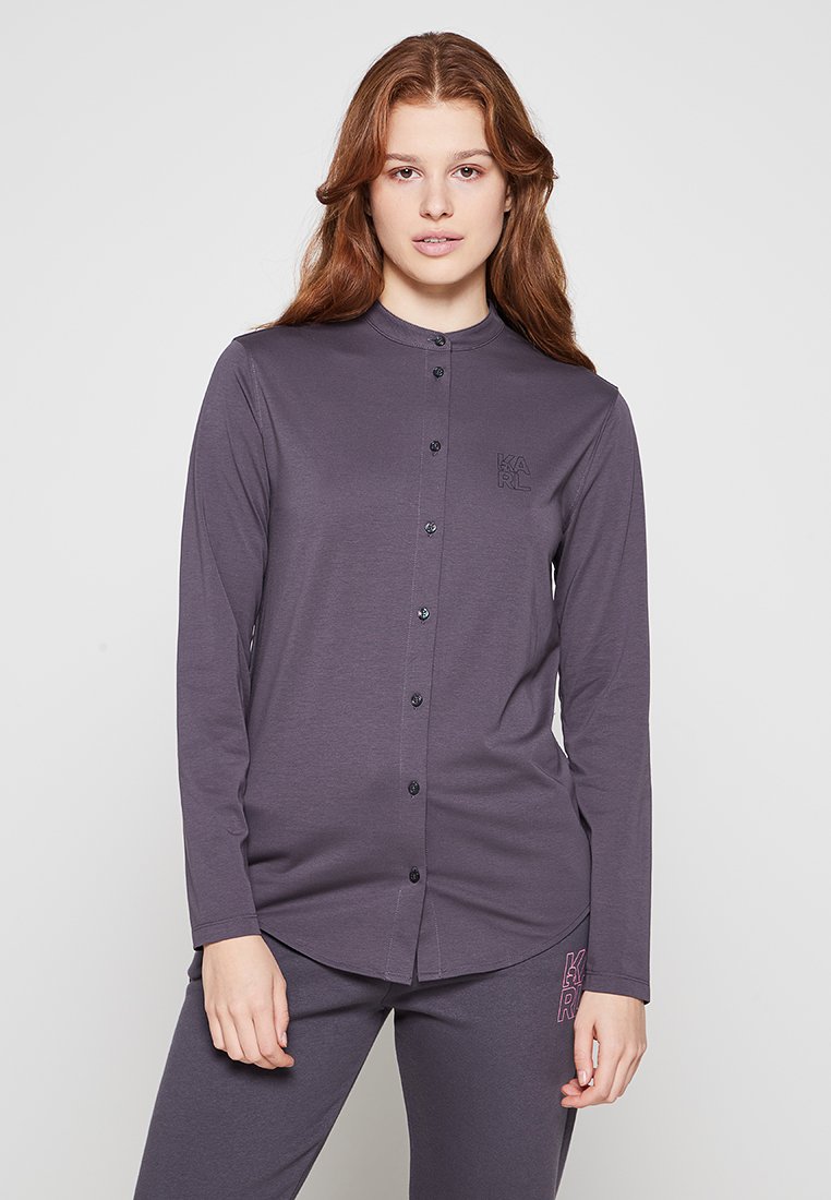 Elevate your spring/summer wardrobe with this Karl Lagerfeld long-sleeve T-shirt for women. The perfect balance of casual and elegant, this grey top is versatile for any occasion. Made with high-quality materials, it is both comfortable and stylish. Stay chic and on-trend with this must-have piece from Karl Lagerfeld.