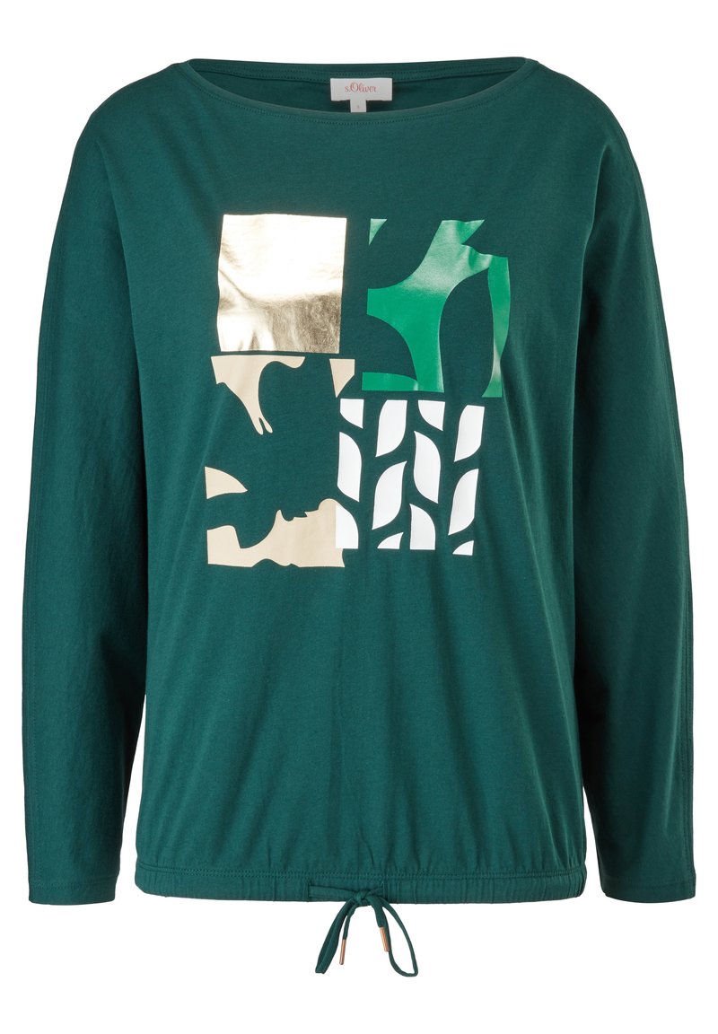 Introducing the casual yet elegant long-sleeve green t-shirt from s.Oliver, perfect for the Spring/Summer season. This versatile top can be dressed up with statement jewelry or styled down with jeans for a chic look. Stay comfortable and stylish all day long in this must-have wardrobe staple. Perfect for any occasion, this green t-shirt is a great addition to your wardrobe.