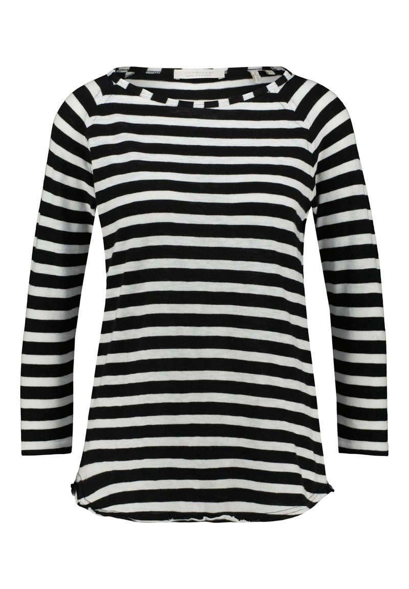 Introducing the Long Sleeve T-shirt from Rich & Royal, perfect for a Casual/Elegant look for women in the Spring/Summer season. This stylish black shirt is versatile and easy to pair with any outfit. Stay comfortable and chic all day long with this must-have wardrobe staple. Elevate your everyday look with this classic piece from Rich & Royal.