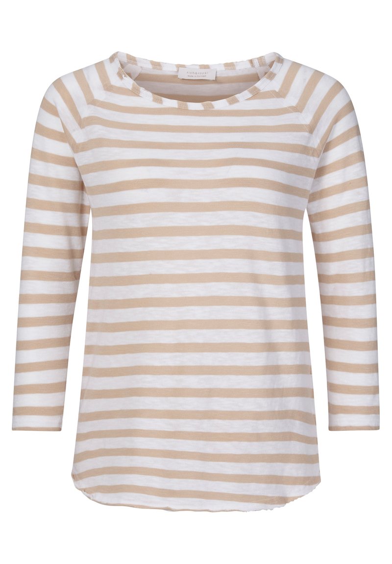 Stay effortlessly chic in this Casual/Elegant Women's Long Sleeve T-shirt from Rich & Royal. The versatile beige color is perfect for Spring/Summer, and the soft fabric ensures comfort all day. Dress it up or down for any occasion, this piece is a must-have in your wardrobe. Experience luxury and style with Rich & Royal's timeless design.