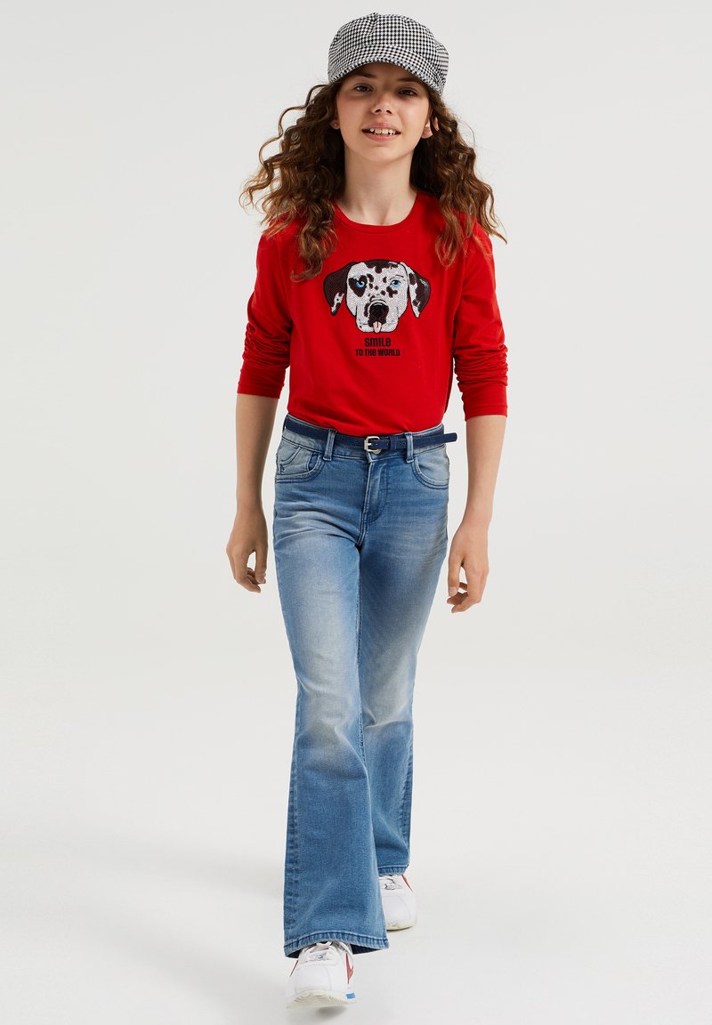 Stay chic and comfortable in this long-sleeve red t-shirt from WE Fashion. Perfect for the warmer months, this casual yet elegant top is a versatile addition to your wardrobe. The stylish design and vibrant color make it easy to dress up or down for any occasion. Add a pop of red to your Spring/Summer closet with this must-have piece.