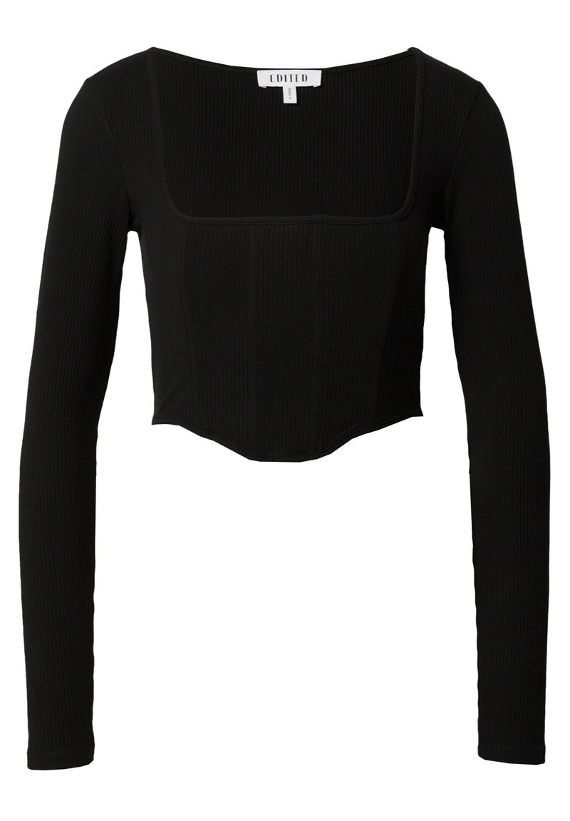 Stay effortlessly chic in this EDITED women's black long-sleeve tee. Perfect for the Spring/Summer season, this casual yet elegant piece is ideal for any occasion. Crafted for style and comfort, this versatile top will be a staple in your wardrobe. Upgrade your look with this timeless essential.