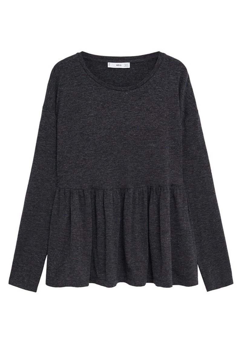 Introducing the Casual/Elegant Grey Long Sleeve T-shirt from Mango, perfect for Spring/Summer. This versatile piece combines comfort with sophistication, making it a must-have in your wardrobe. Its relaxed fit and stylish design make it ideal for any occasion, whether it's a day out shopping or a dinner date. Elevate your look with this timeless and chic top.