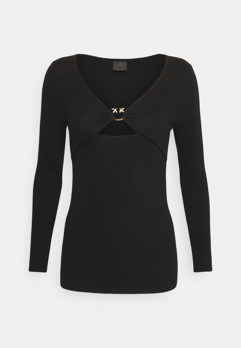 Introducing the Casual/Elegant Black Long Sleeve T-shirt for Women from Pinko. Perfect for the Spring/Summer season, this versatile piece can easily be dressed up or down. Its sleek design and comfortable fit make it a must-have in every woman's wardrobe. Stay chic and stylish with this timeless addition from Pinko.