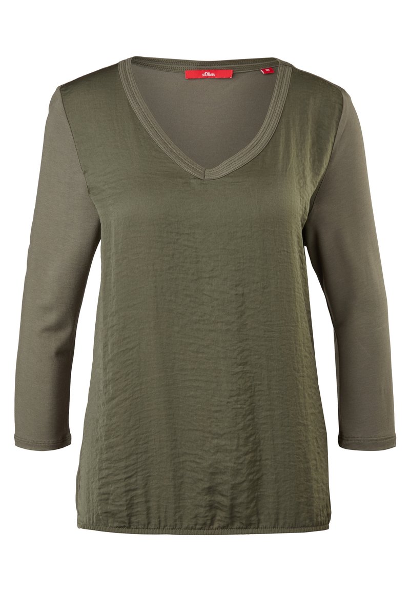 Stay chic and comfortable this Spring/Summer with s.Oliver's Long Sleeve T-shirt in a stylish beige hue. Perfect for any casual or elegant occasion, this versatile wardrobe staple effortlessly combines fashion and function. Crafted for women who value both style and comfort, this t-shirt is a must-have for the season. Elevate your wardrobe with this timeless piece from s.Oliver.