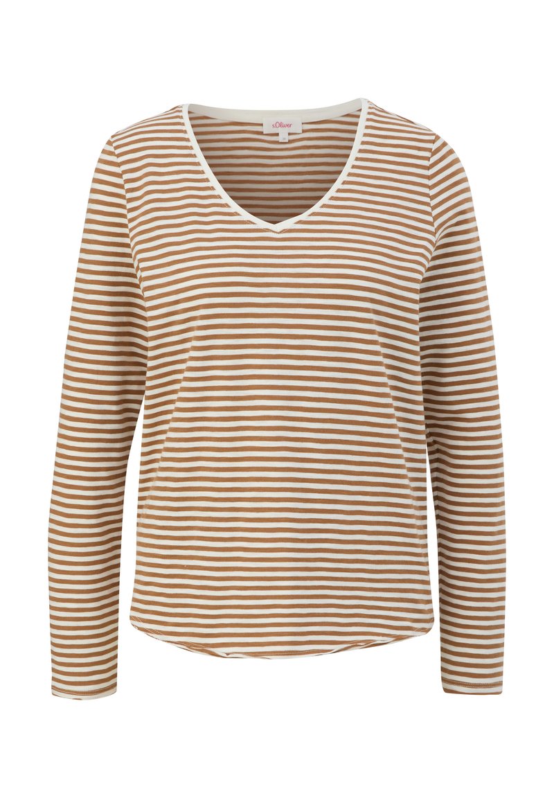 Stay chic and comfortable this Spring/Summer with s.Oliver's Long Sleeve T-shirt in a stylish beige hue. Perfect for any casual or elegant occasion, this versatile wardrobe staple effortlessly combines fashion and function. Crafted for women who value both style and comfort, this t-shirt is a must-have for the season. Elevate your wardrobe with this timeless piece from s.Oliver.