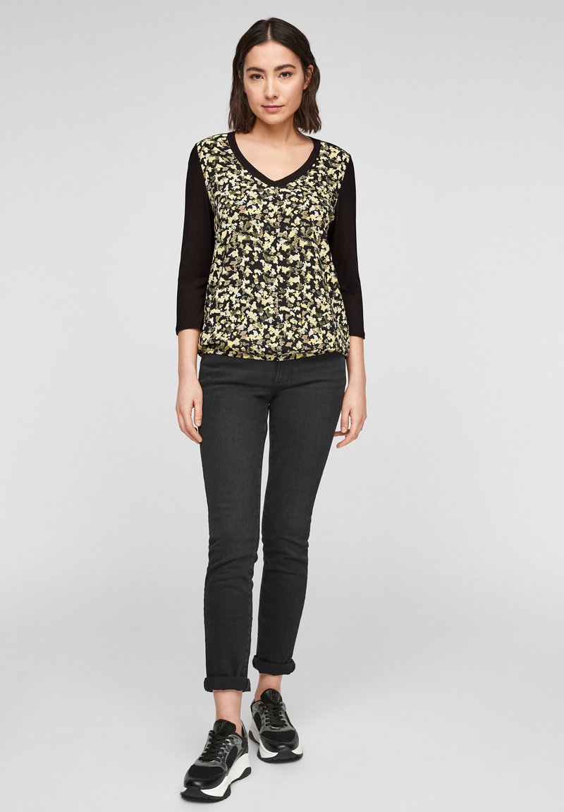Elevate your spring/summer wardrobe with this s.Oliver long sleeve t-shirt in black. Perfect for women who love a blend of casual and elegant style. The versatile design makes it easy to dress up or down for any occasion. Stay chic and comfortable in this must-have staple piece.