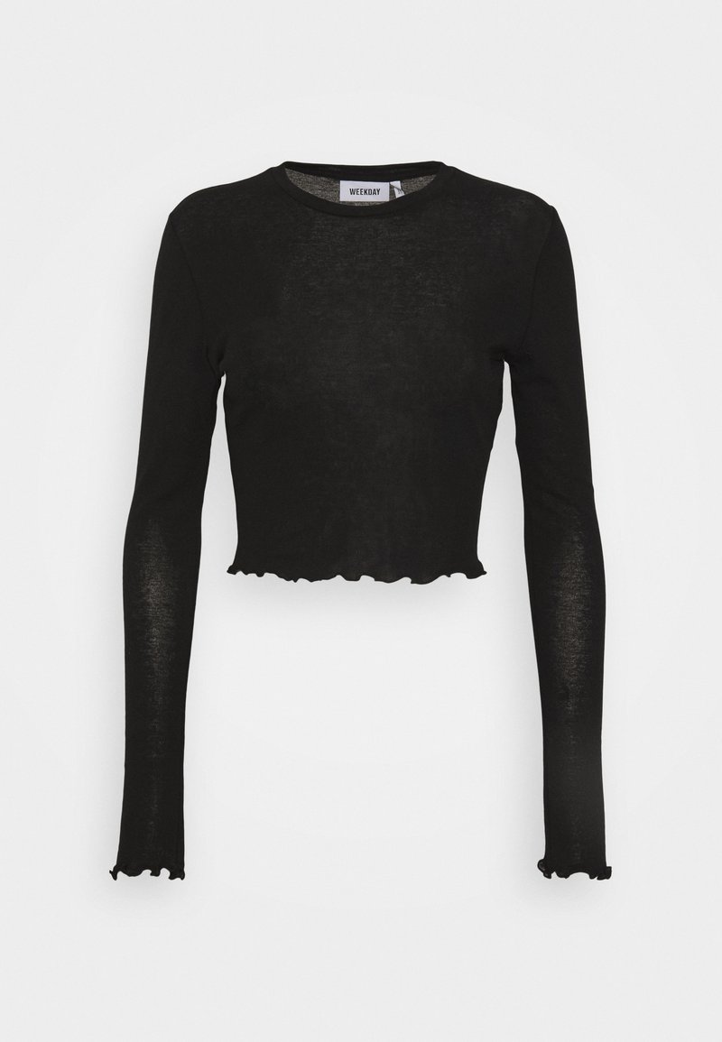 Stay stylish and versatile this spring/summer with the Weekday Long Sleeve T-shirt for Women. This casual yet elegant piece in classic black is perfect for any occasion. Made with high-quality materials, it guarantees both comfort and style. Elevate your wardrobe with this timeless staple.