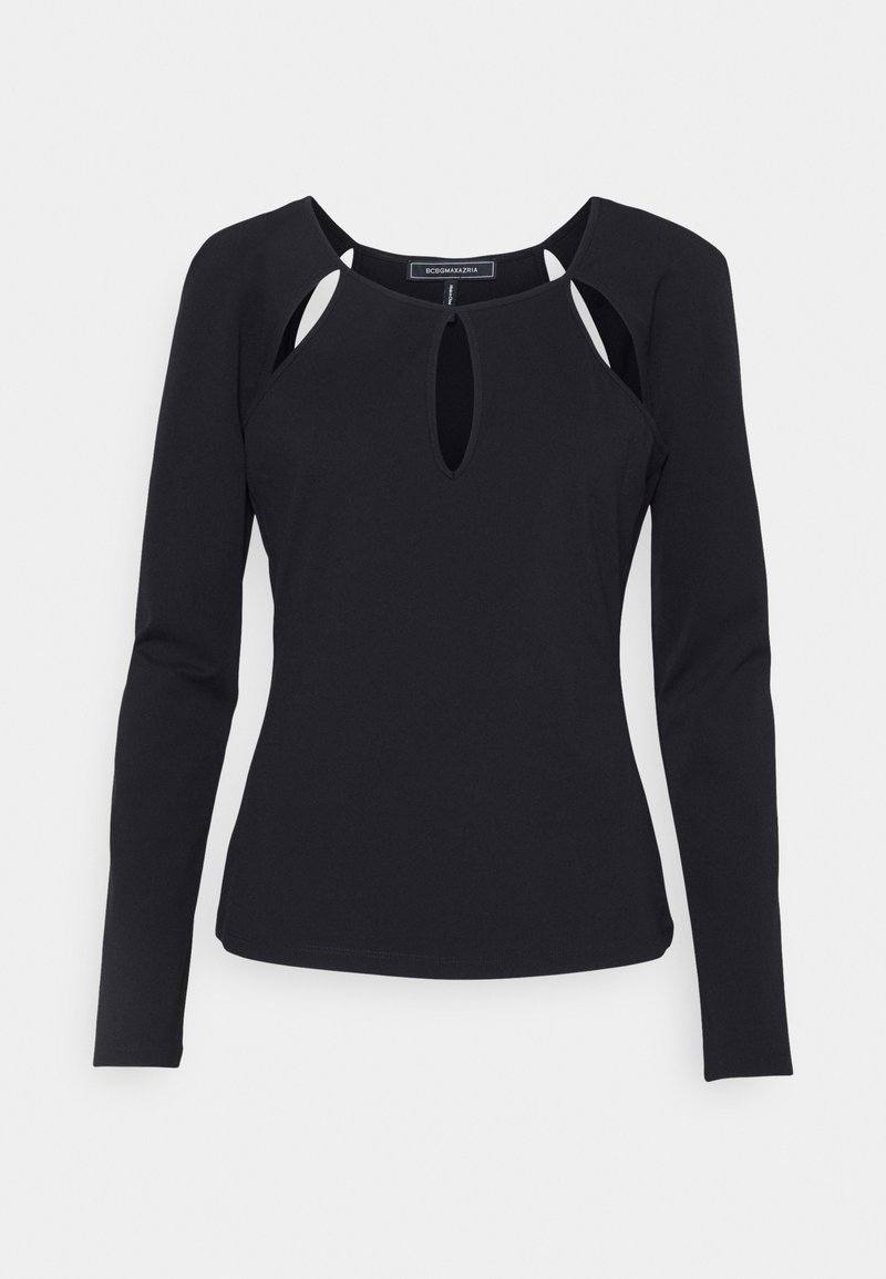 Stay chic and sophisticated this Spring/Summer with this Casual/Elegant black long sleeve top from BCBGMAXAZRIA. Perfect for any occasion, whether you're running errands or out for lunch with friends. The versatile design effortlessly combines comfort with style. Elevate your wardrobe with this timeless piece.