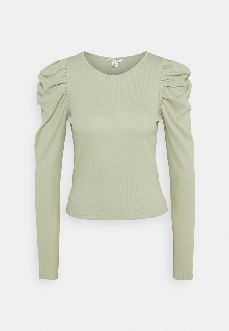 Stay stylish and comfortable this Spring/Summer with Monki's Casual/Elegant Long Sleeve Green T-shirt for Women. The perfect blend of laid-back and chic, this top is ideal for any casual outing or dressier occasion. Its vibrant green color will add a pop of freshness to your wardrobe. Whether paired with jeans or a skirt, this tee is a wardrobe essential for the warmer months.